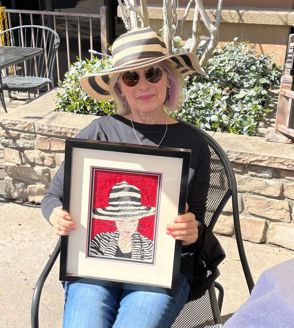 This work is based upon a photo of younger me wearing this lovely striped hat and I must now bid adieu, now that it is sold.